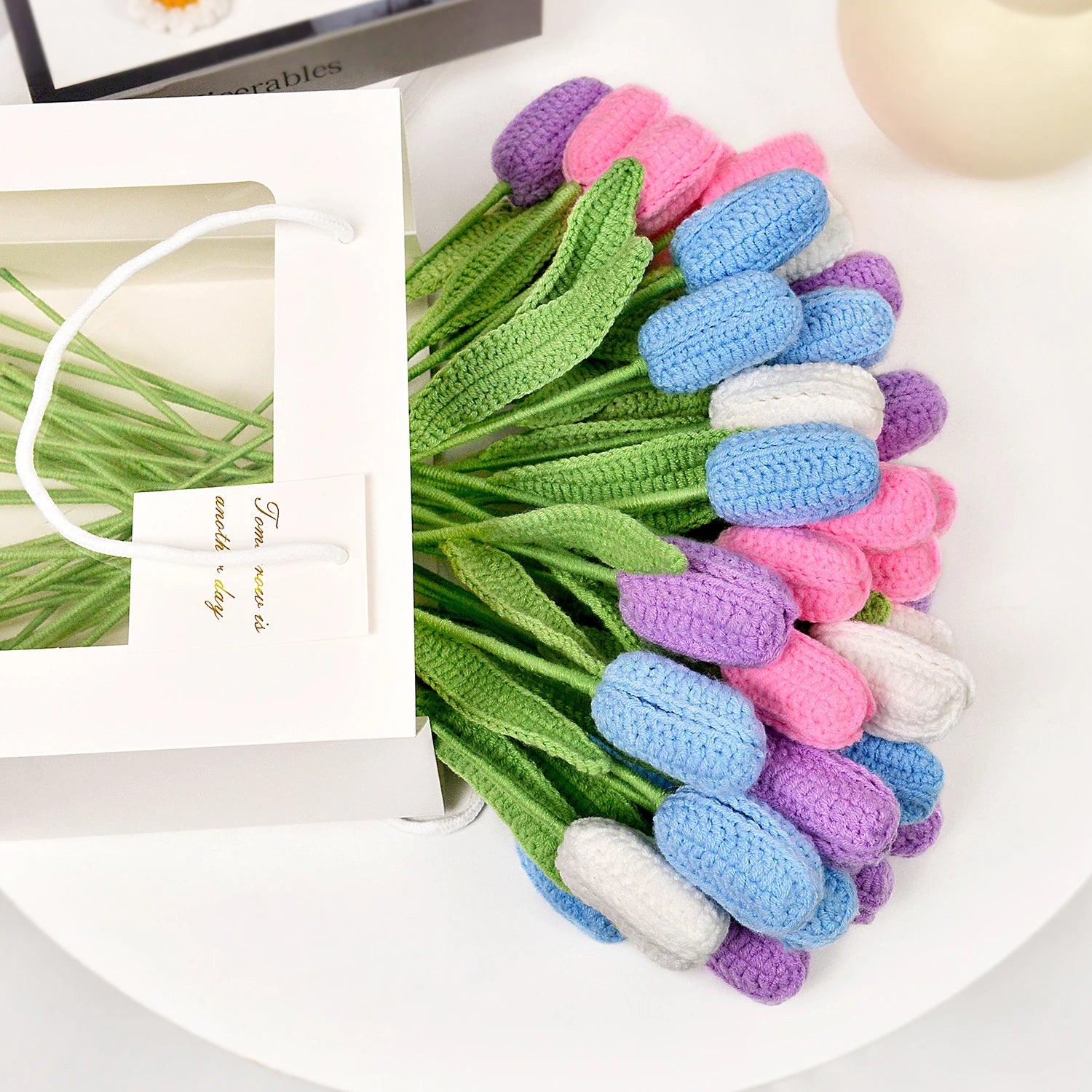 Answer 2: These crochet tulip flowers are designed primarily for indoor use, as prolonged exposure to harsh outdoor conditions may affect their appearance and longevity. They make perfect centerpieces or decorative pieces for your home.